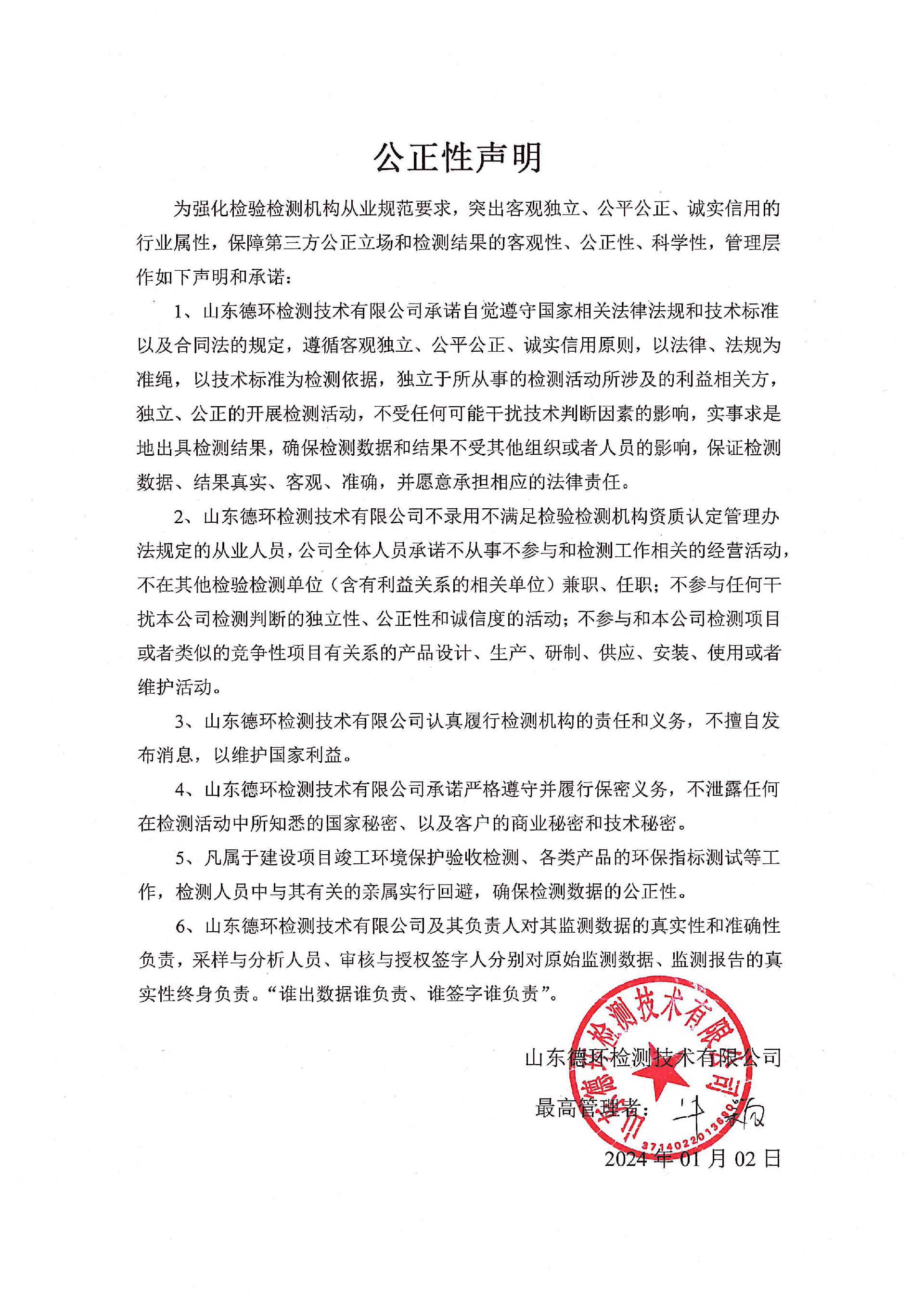 山東德環(huán)檢測技術(shù)有限公司公正性聲明